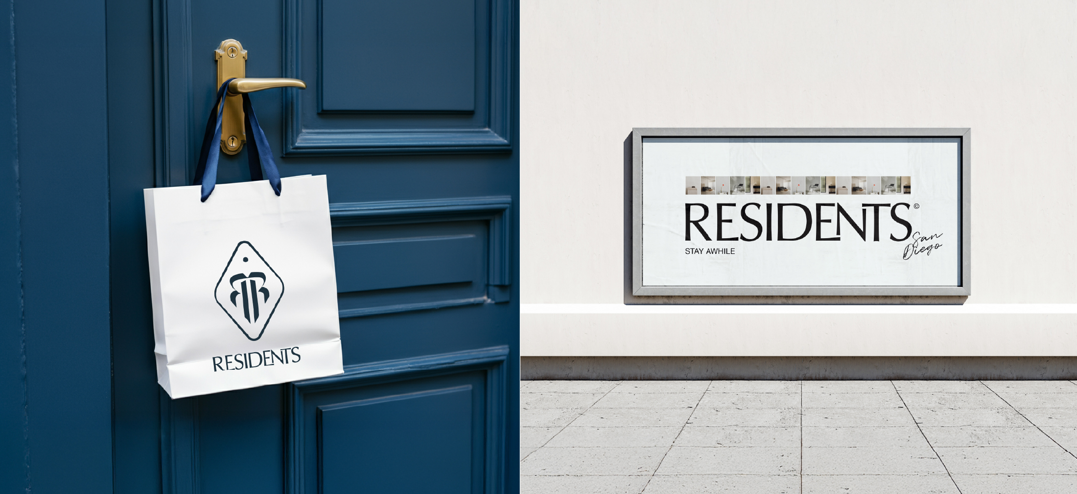 Residents is an extended-stay, apartment style hospitality concept. The identity is simple and adaptable across cities, drawing inspiration from architectural details and offering an updated take on classic hotel sensibility.